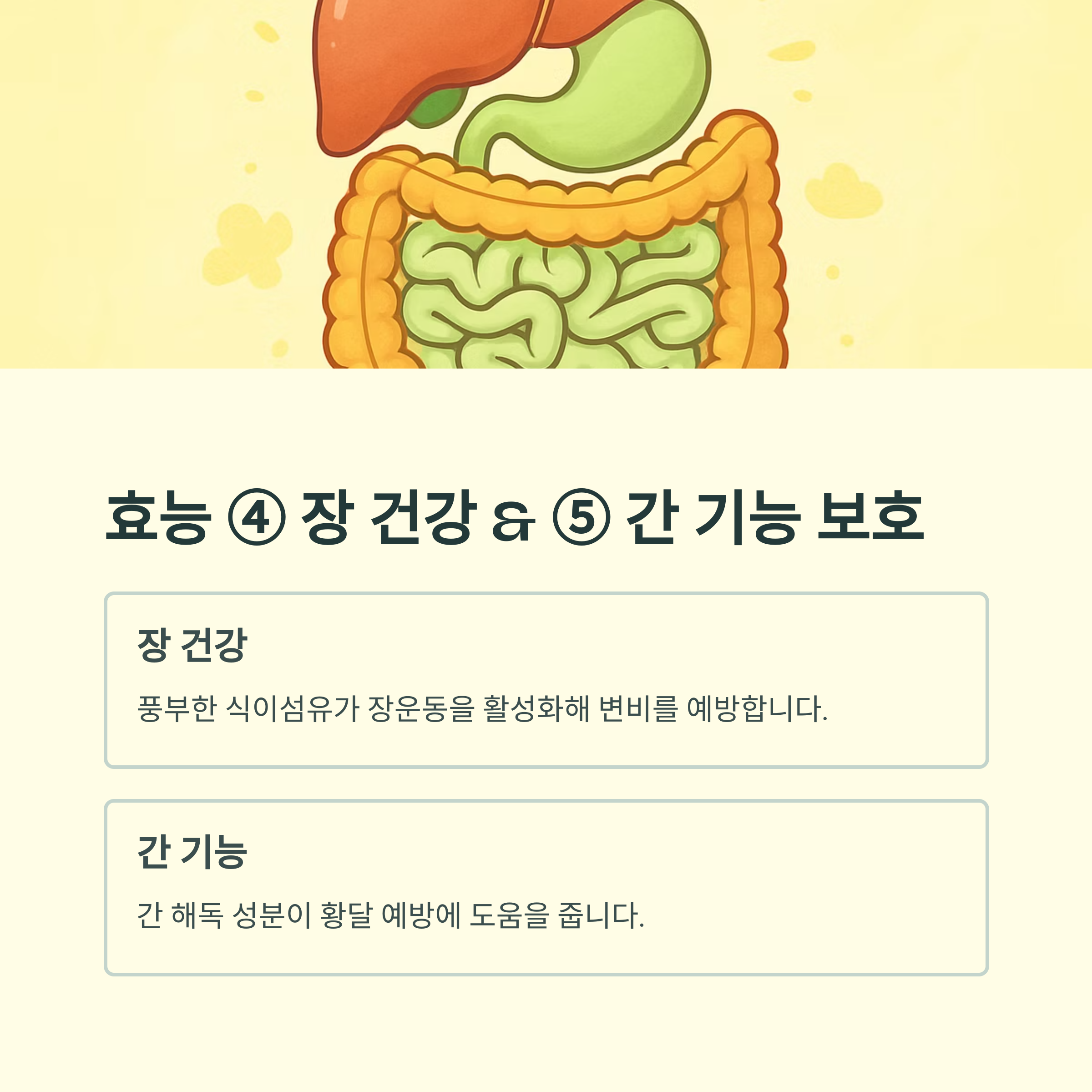 풍부한 식이섬유가 장운동을 활성화해 배변 활동을 돕고, 장내 환경을 개선합니다.