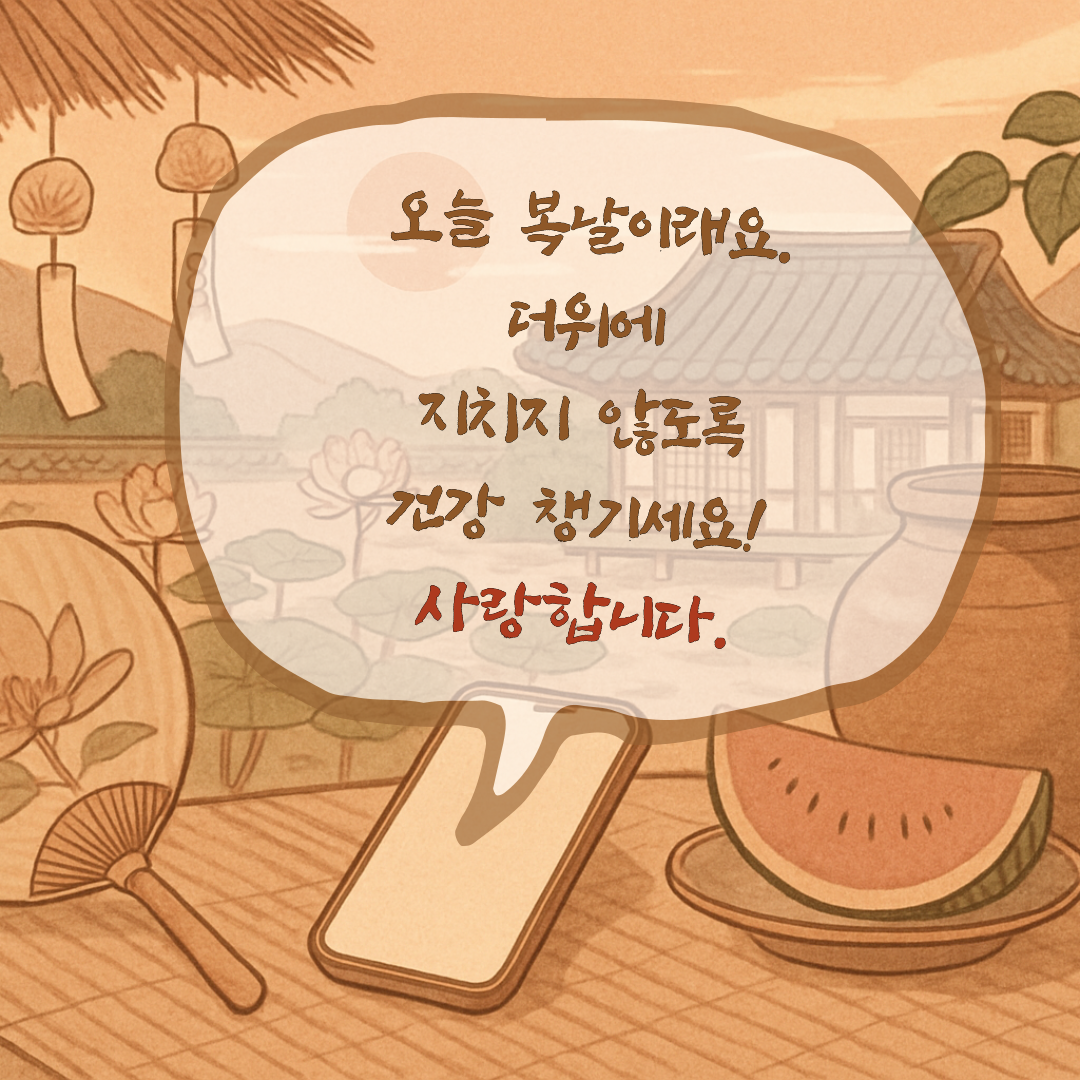 "오늘 중복이래요. 더위에 지치지 않도록 건강 챙기세요, 사랑합니다."