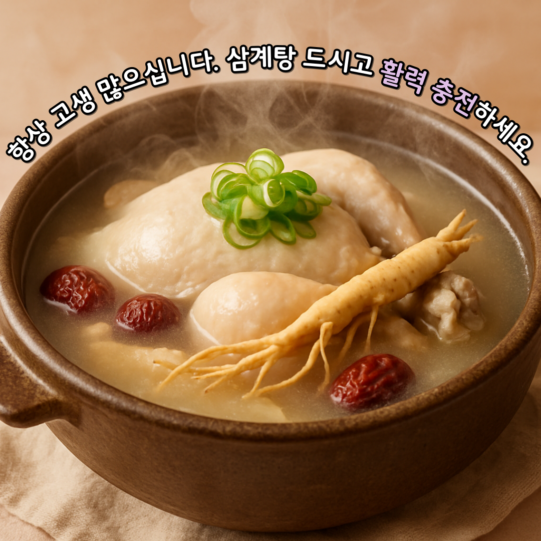 "항상 고생 많으십니다. 삼계탕 드시고 활력 충전하세요."
