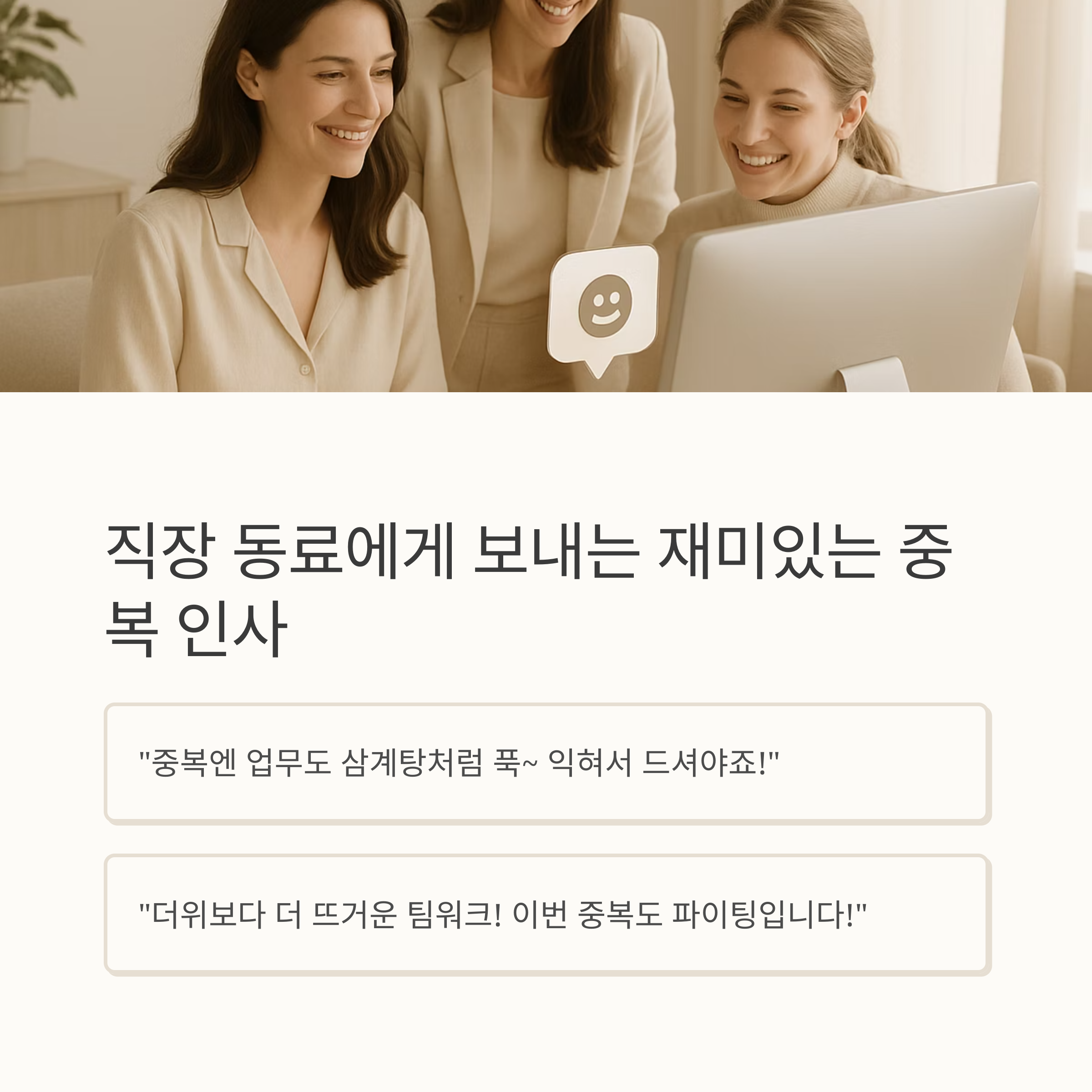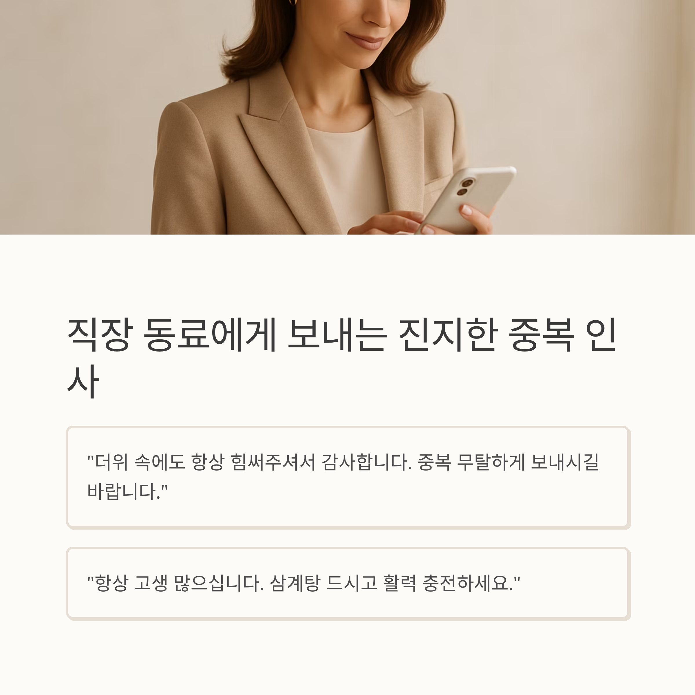 지나치게 뻔한 "중복 잘 보내세요~"는 이제 그만! 상황과 대상에 맞춘 다양한 인사말 예시를 준비했습니다.