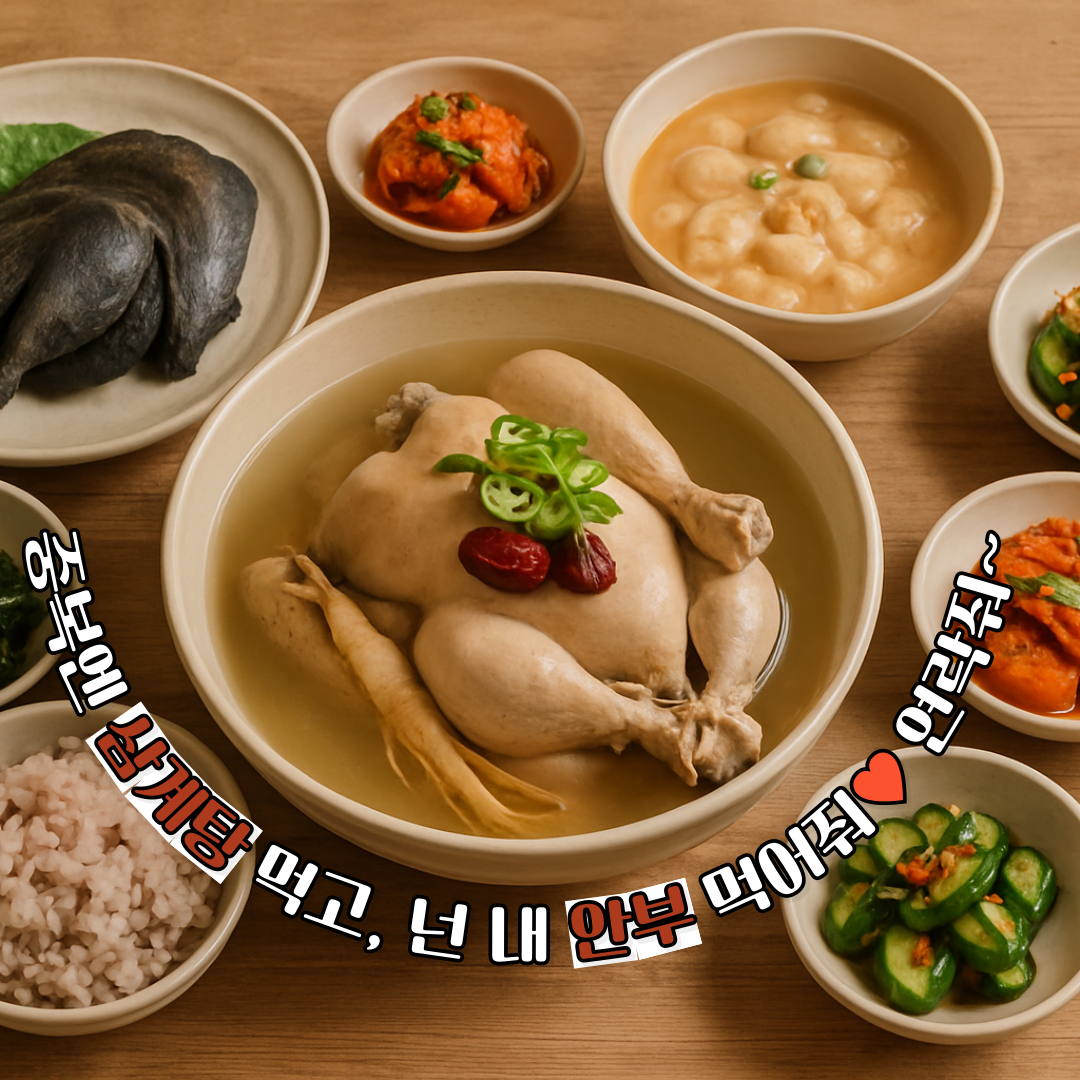 "중복엔 삼계탕 먹고, 넌 내 안부 먹어줘♥ 연락줘~"