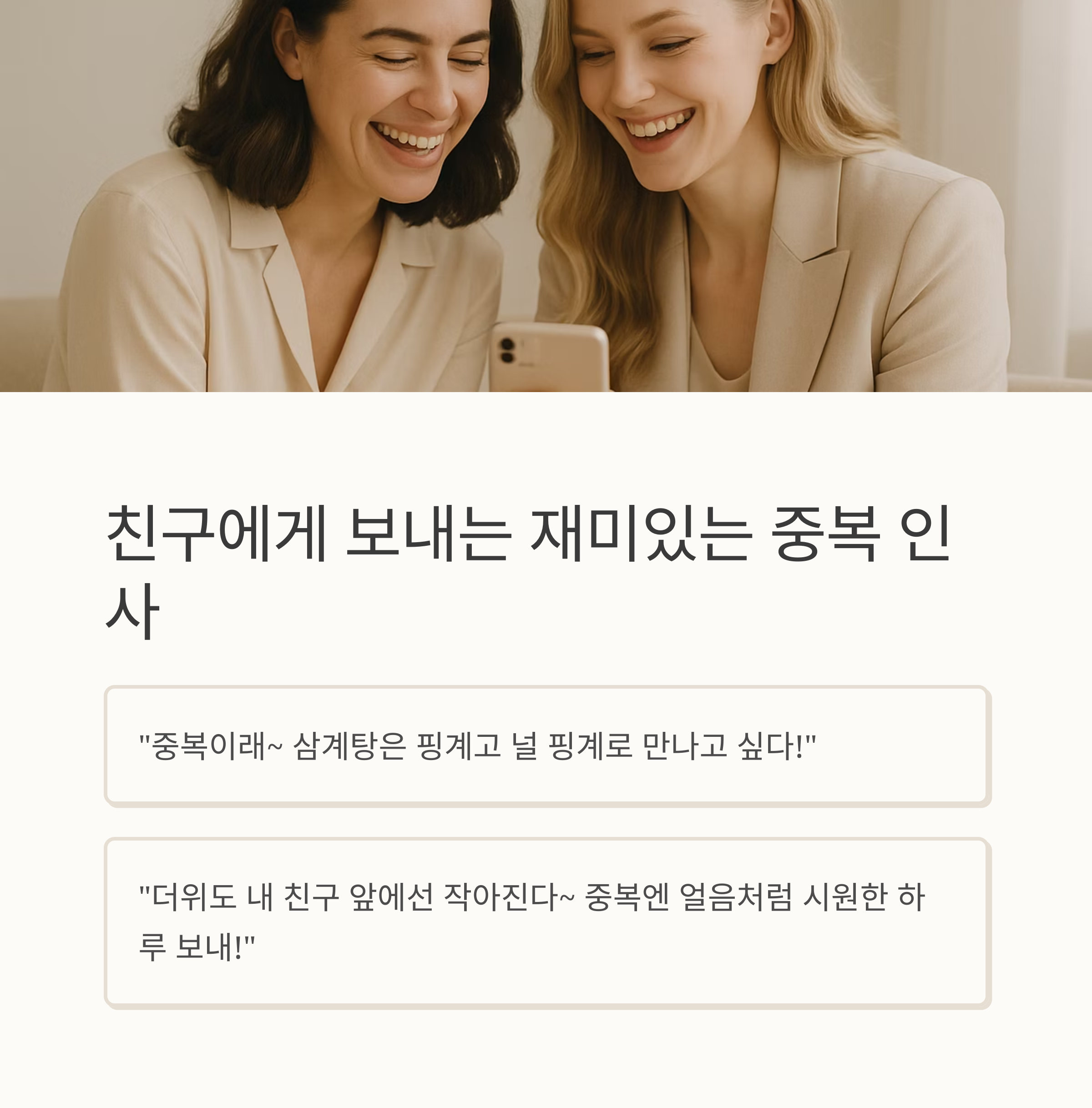 "중복인데 덥기만 하면 서운하지! 너처럼 뜨거운 우정도 같이 챙기자!"