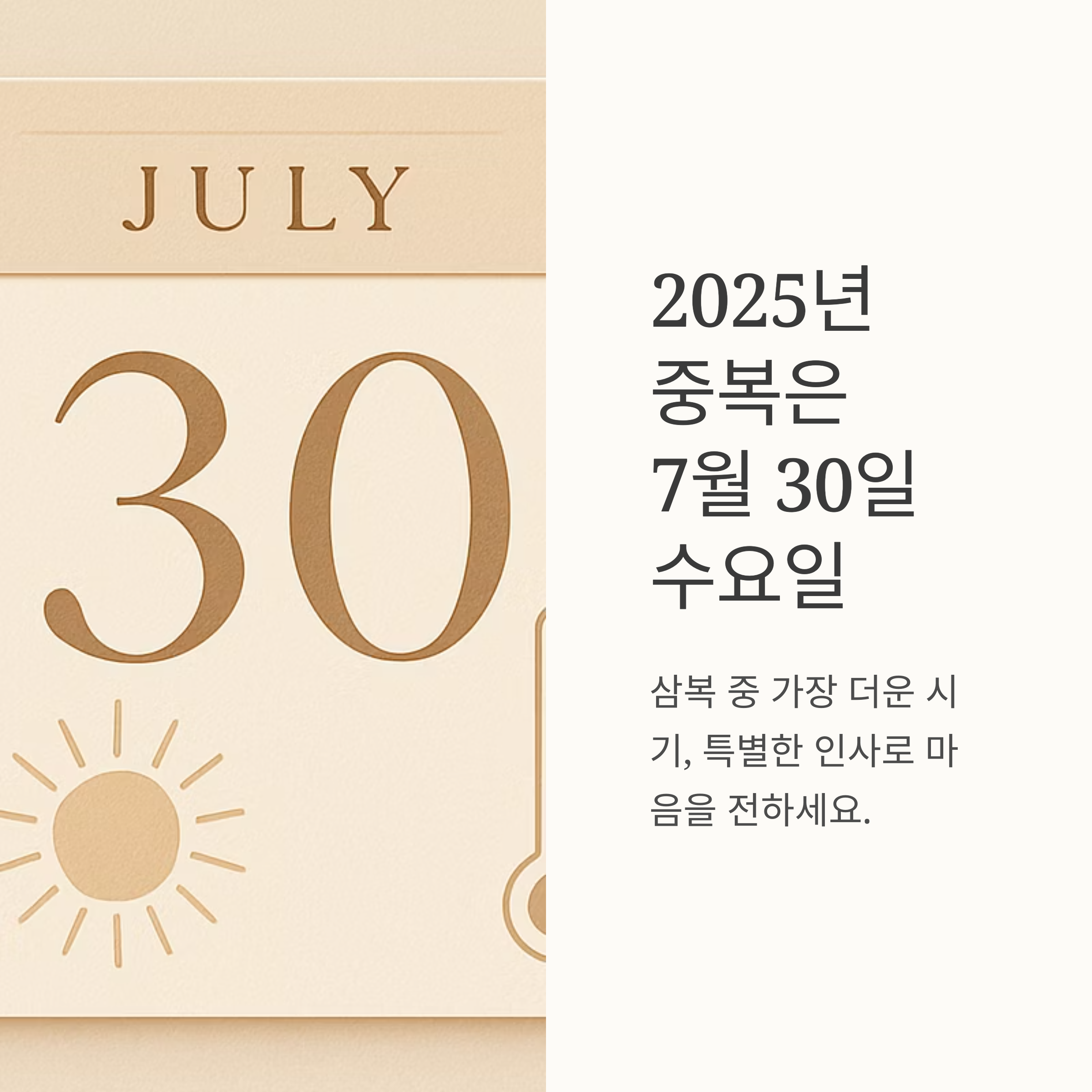 2025년 올해 중복은 7월 30일 수요일입니다. 삼복 중에서도 가장 더운 시기인 중복(中伏), 어떻게 인사해야 할까요?