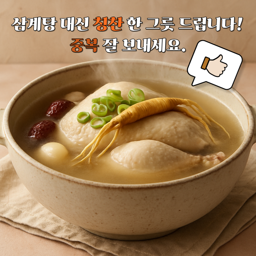 "삼계탕 대신 칭찬 한 그릇 드립니다! 중복 잘 보내세요."