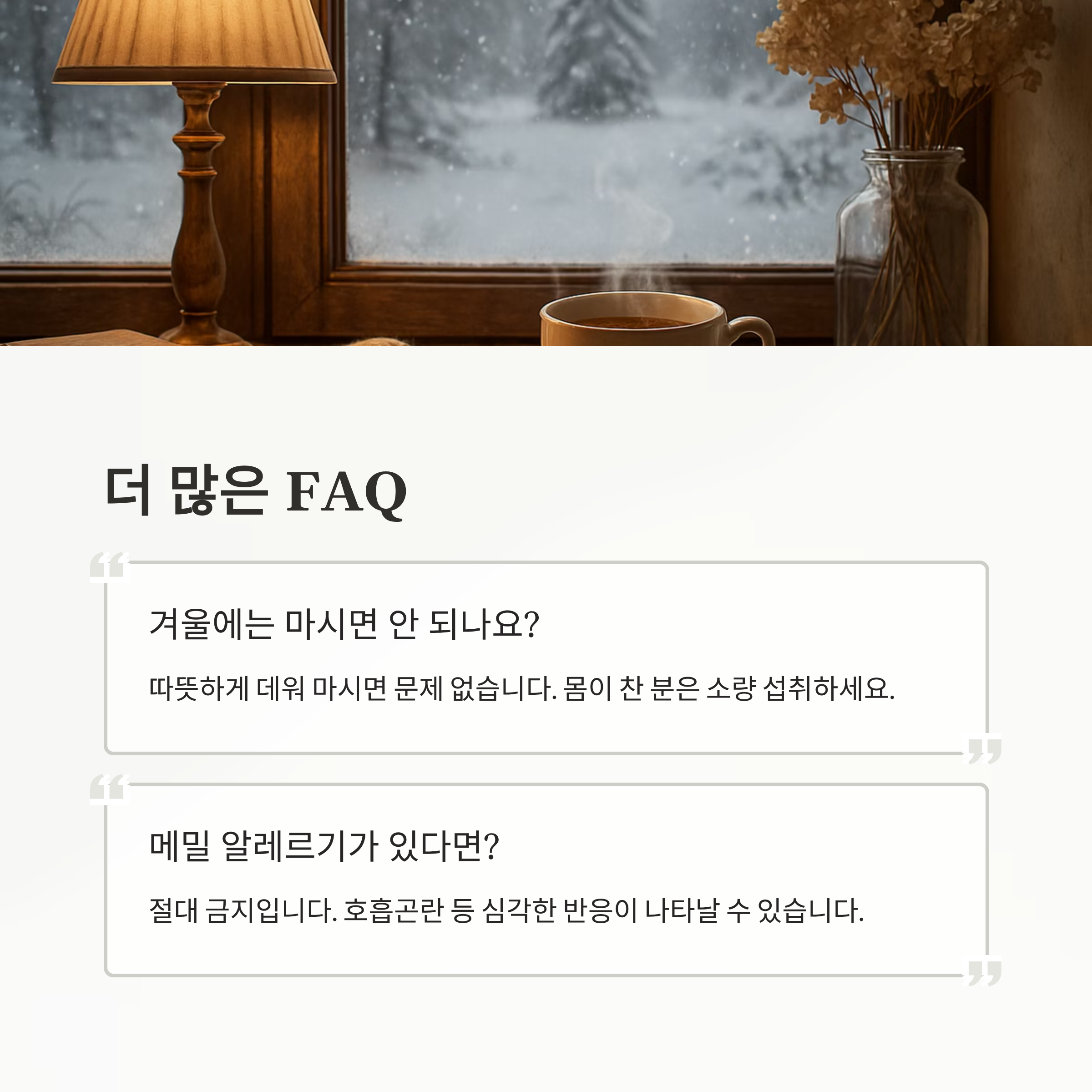 Q3. 메밀차는 찬 성질인데 겨울에는 마시면 안 되나요?