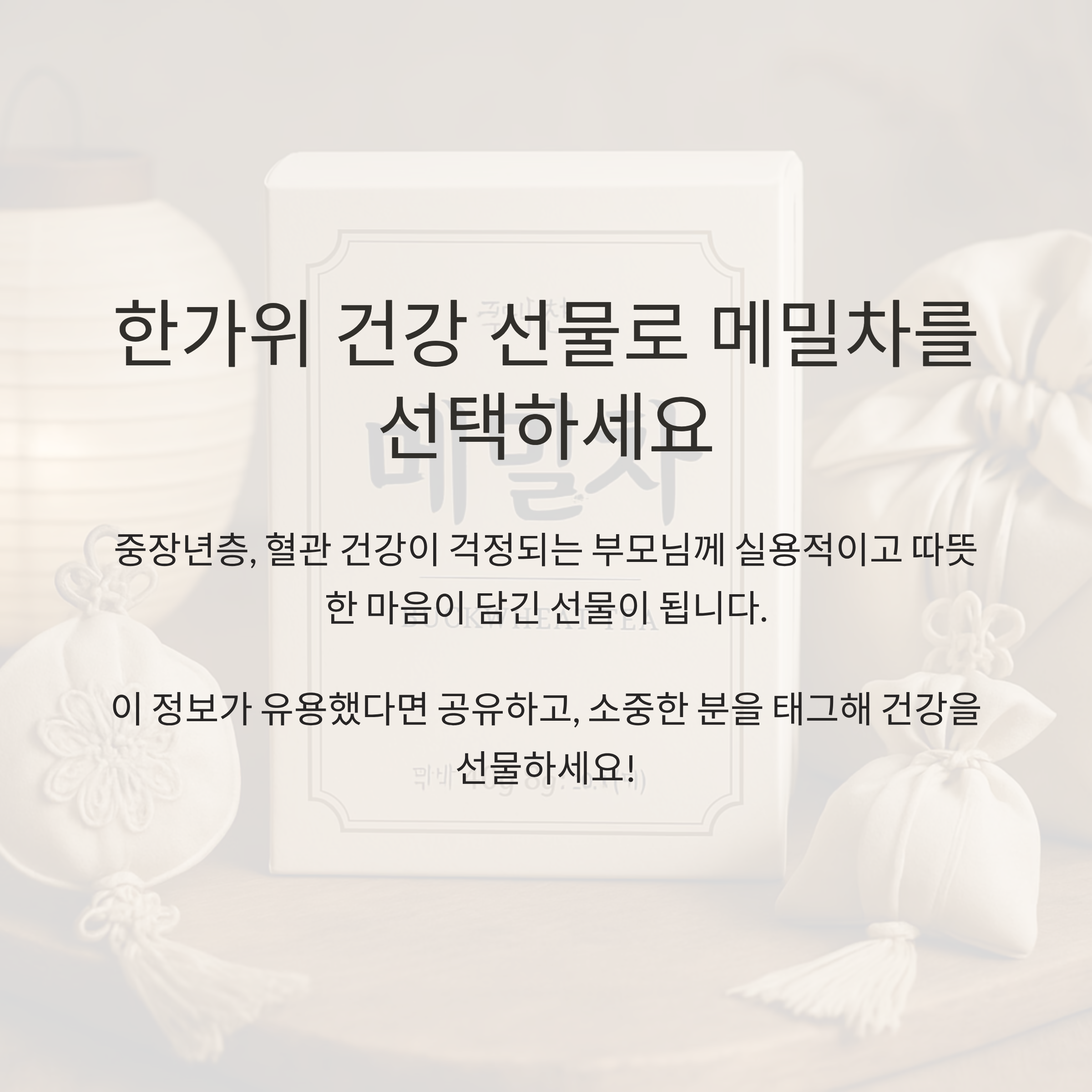 다가오는 한가위를 맞아 건강을 챙기고 싶은 분들께 메밀차는 훌륭한 선물이 될 수 있습니다.