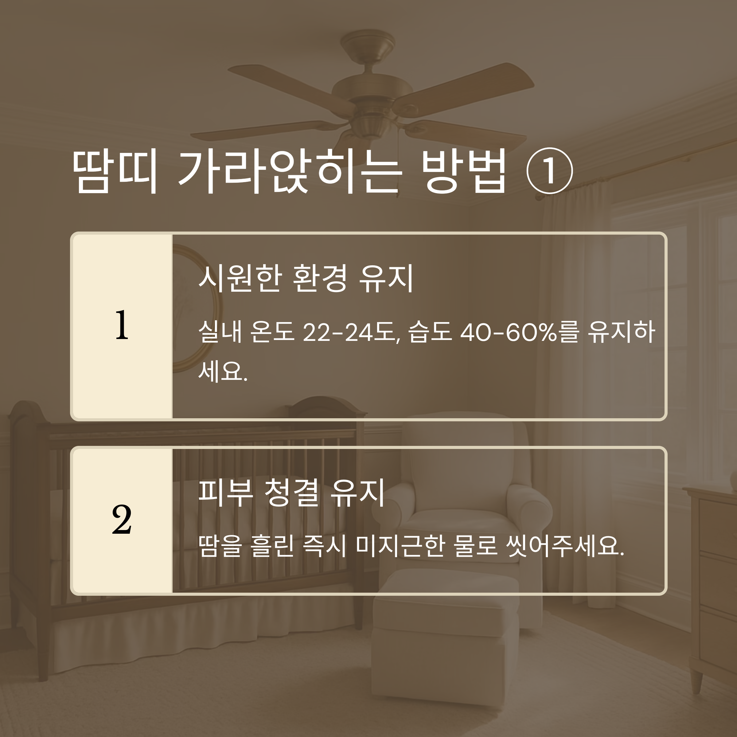 아기 땀띠 가라앉히는 방법은 시원한 환경 조성과 청결한 피부 관리가 핵심입니다.