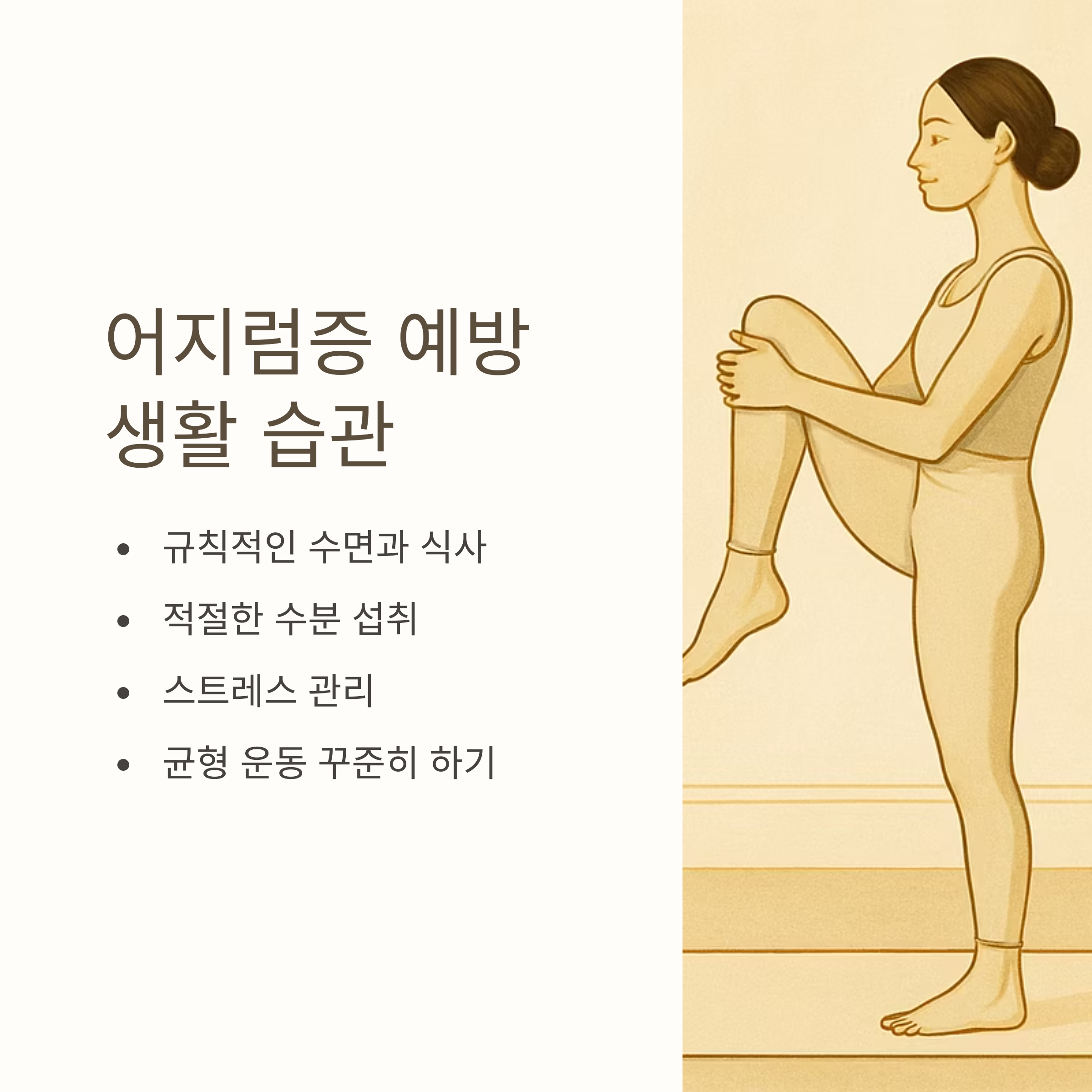 - 전정운동: 천천히 고개 돌리기, 균형감각 회복에 도움