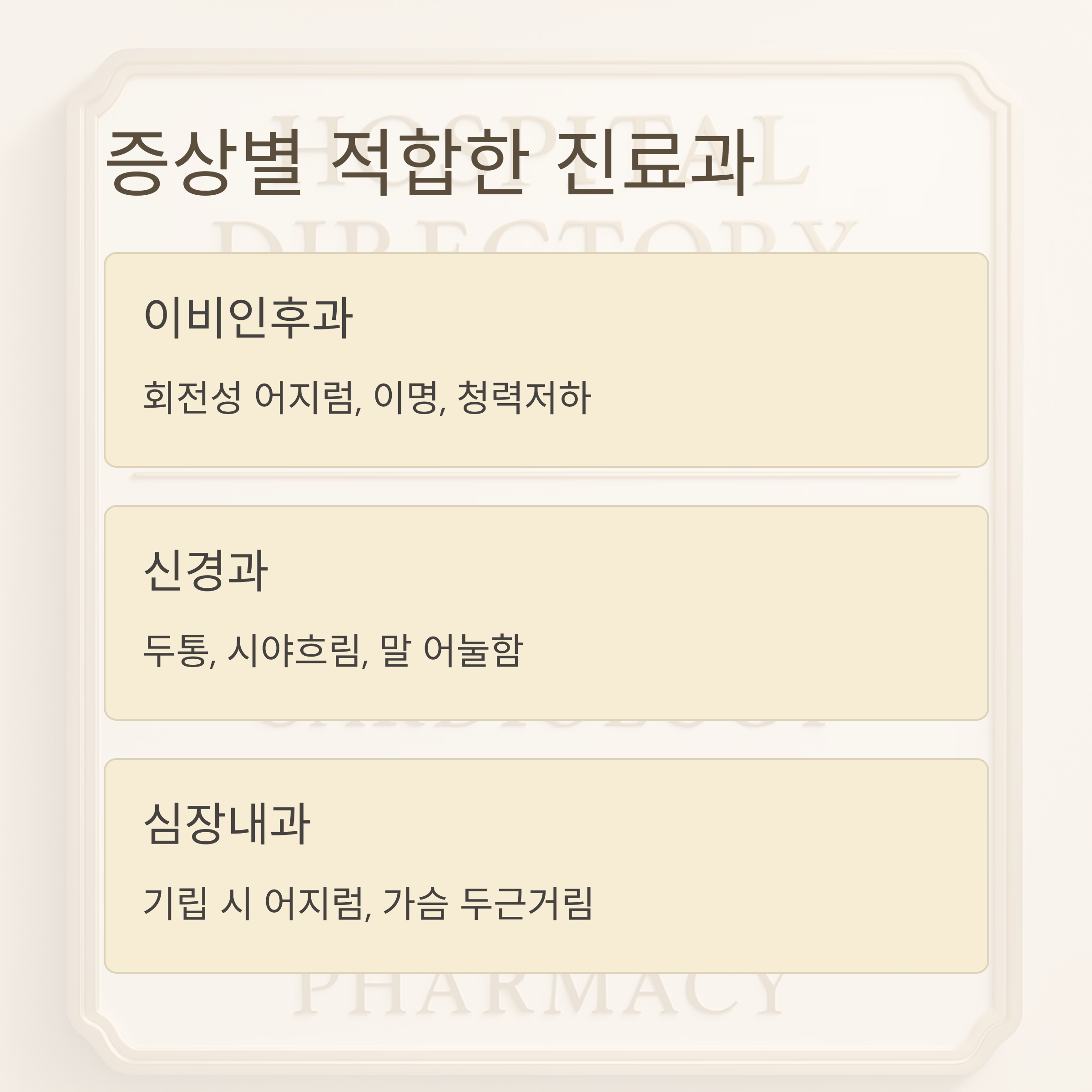 아래 표를 참고하여 본인의 증상에 맞는 진료과를 선택해보세요.